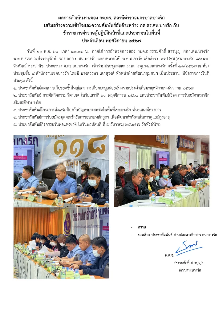ผลการดำเนินงานของ กต.ตร. สถานีตำรวจนครบาลบางรัก พฤศจิกายน 2567