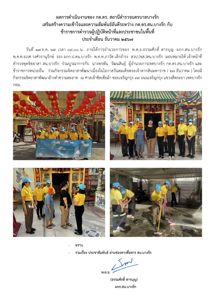 ผลการดำเนินงานของ กต.ตร. สถานีตำรวจนครบาลบางรัก ธันวาคม 2567