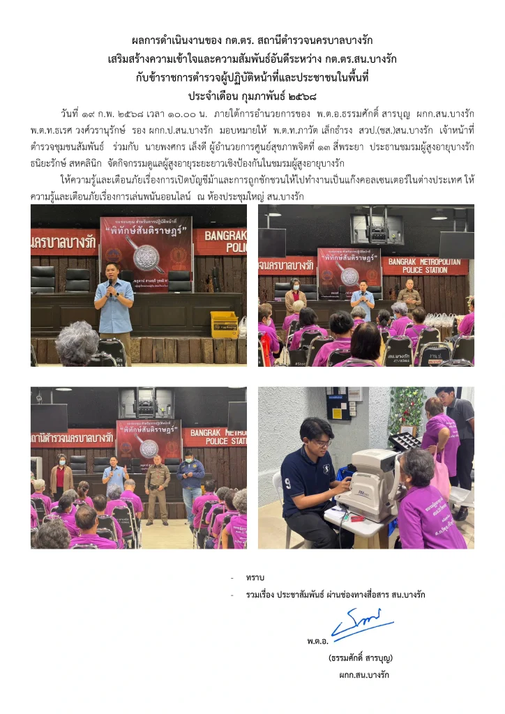 ผลการดำเนินงานของ กต.ตร. สถานีตำรวจนครบาลบางรัก กุมภาพันธ์ 2568