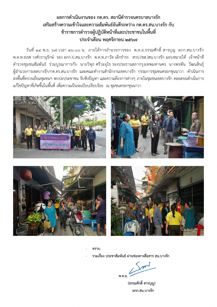 ผลการดำเนินงานของ กต.ตร. สถานีตำรวจนครบาลบางรัก พฤศจิกายน 2567