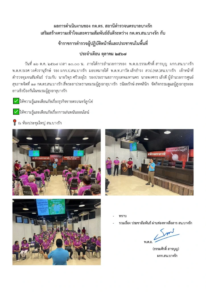 ผลการดำเนินงานของ กต.ตร. สถานีตำรวจนครบาลบางรัก ต.ค.67