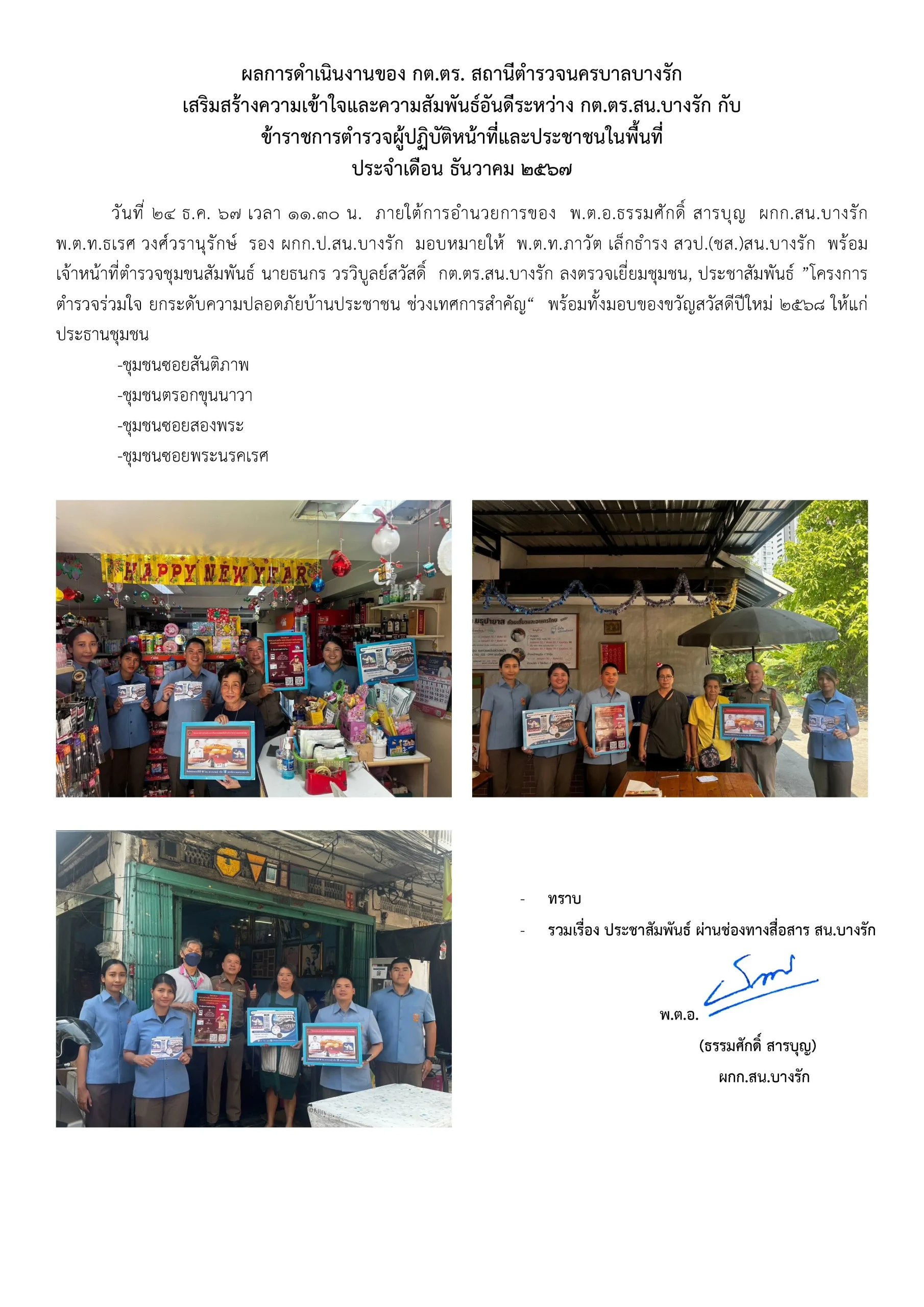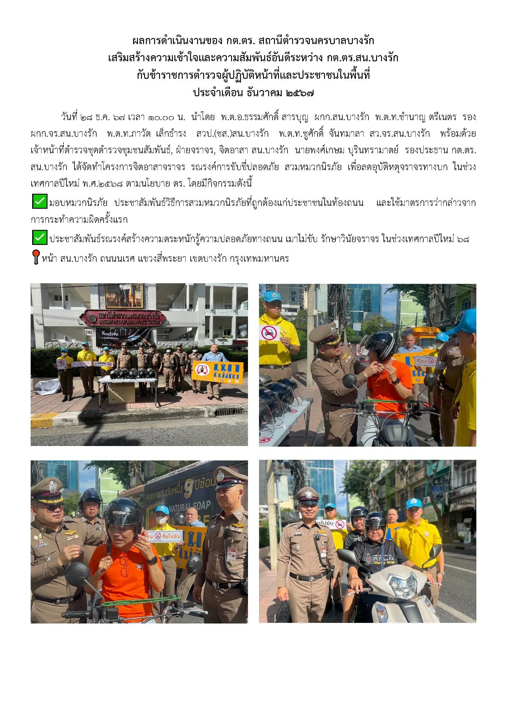 ผลการดำเนินงานของ กต.ตร. สถานีตำรวจนครบาลบางรัก ธันวาคม 2567