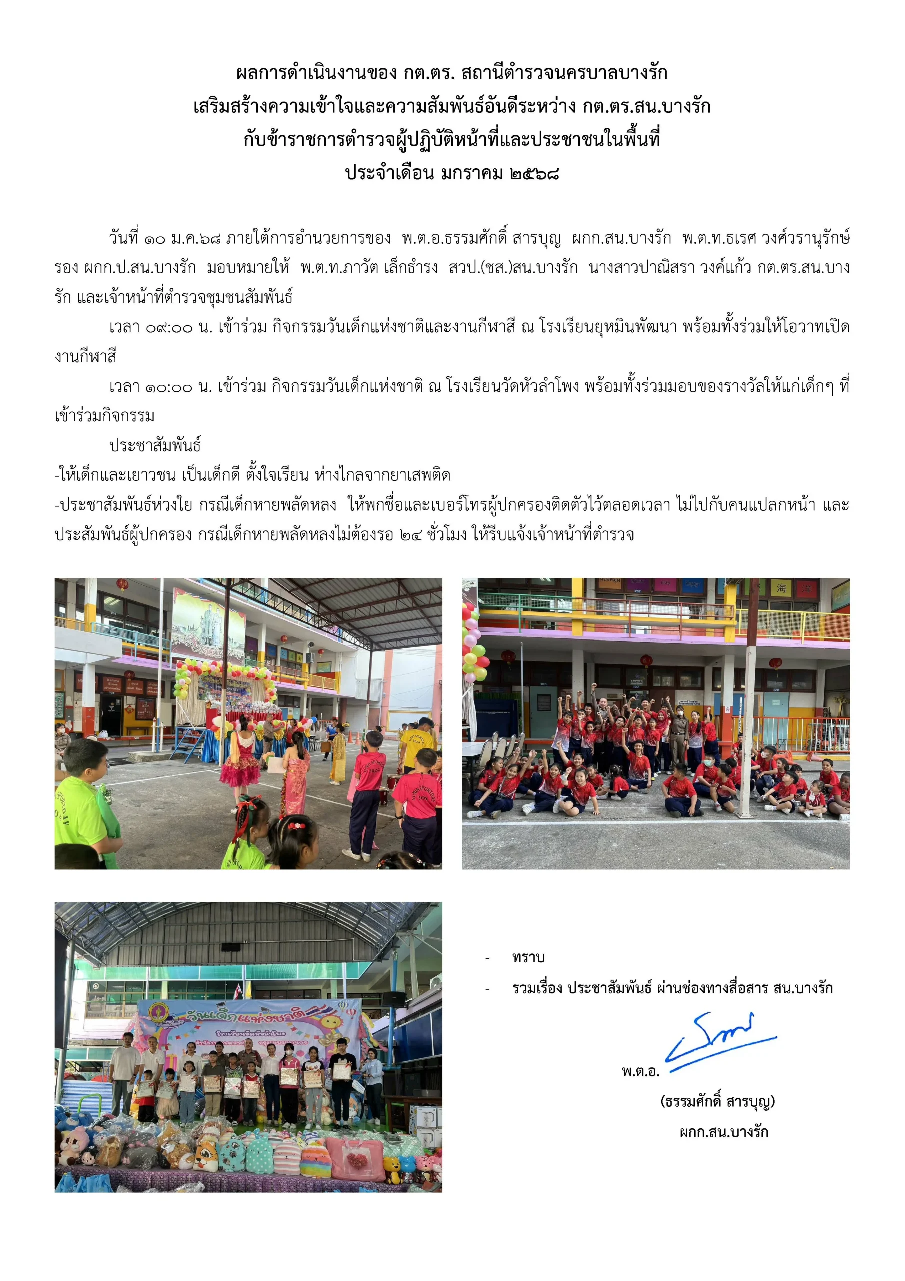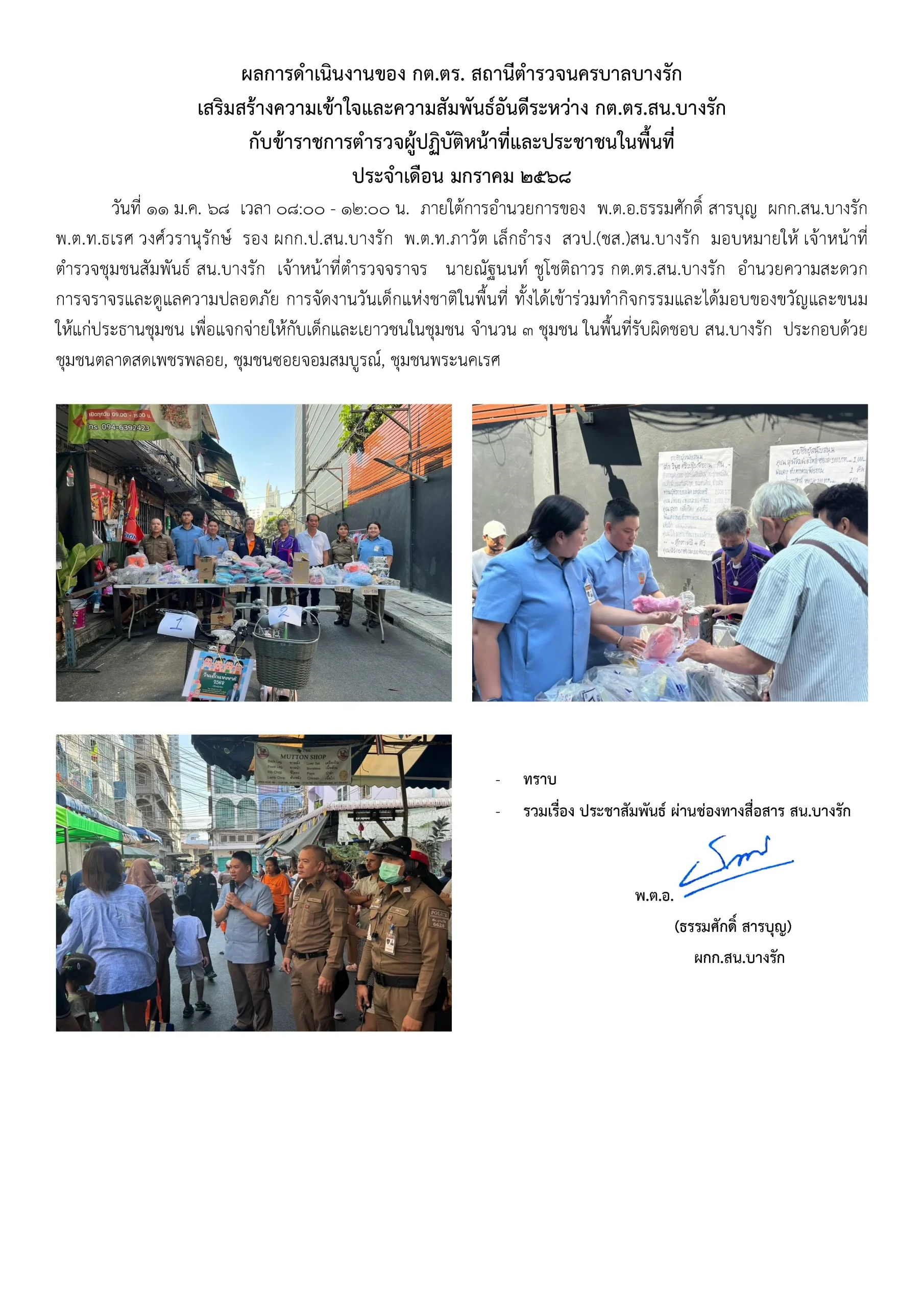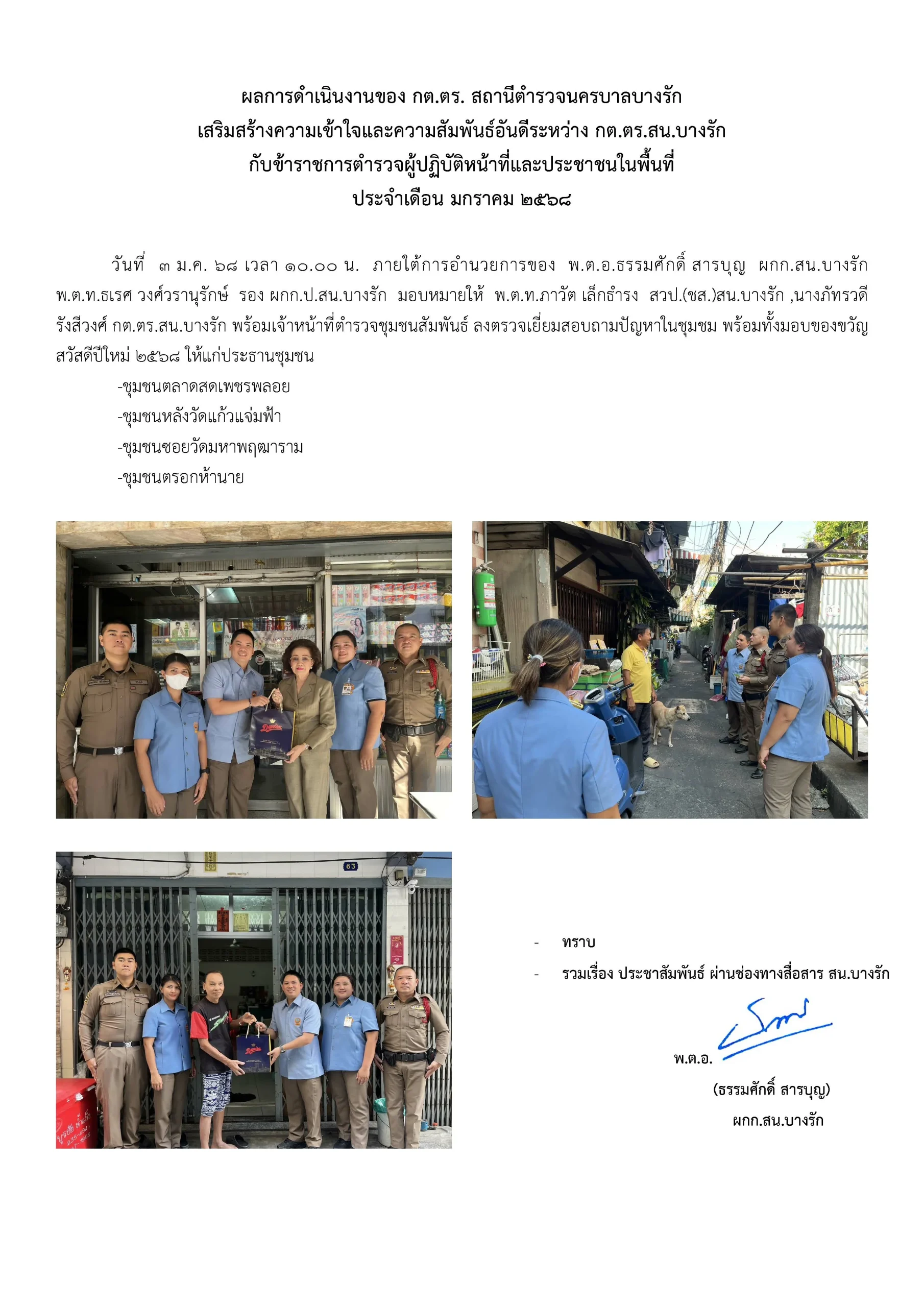 ผลการดำเนินงานของ กต.ตร. สถานีตำรวจนครบาลบางรัก มกราคม 2568