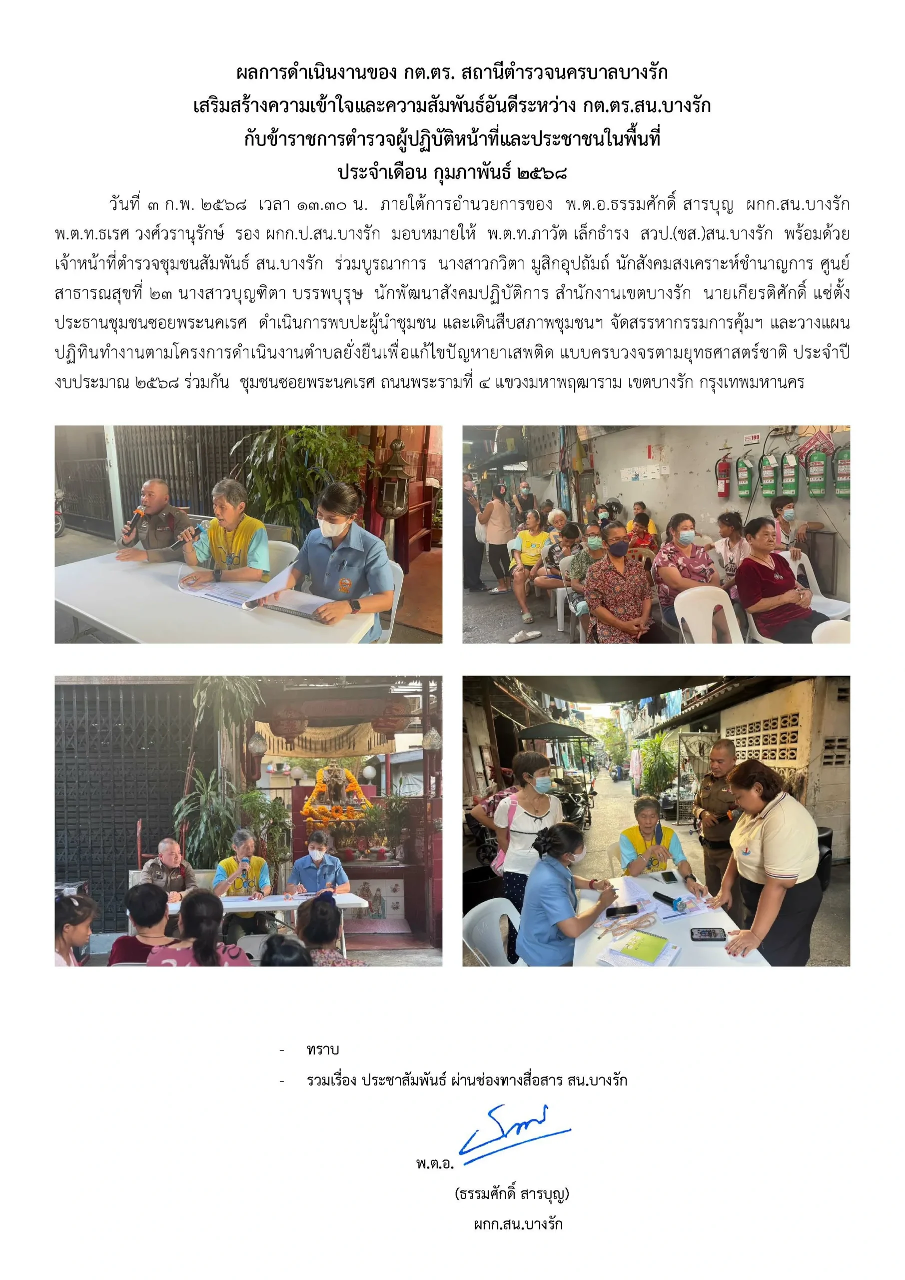 ผลการดำเนินงานของ กต.ตร. สถานีตำรวจนครบาลบางรัก กุมภาพันธ์ 2568